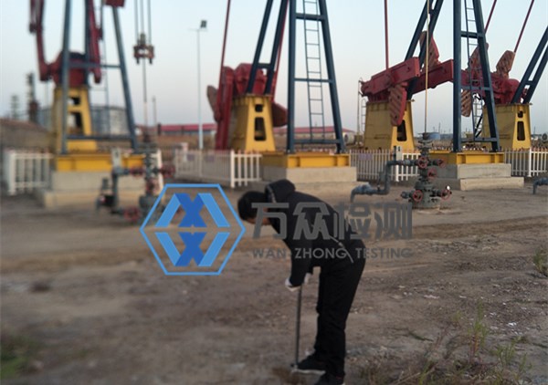 受石油大港油田第六采油廠的委托,山東萬眾檢測技術(shù)有限公司于對該項目進行了驗收監(jiān)測,檢測項目包含:無組織廢氣、土壤、地下水、地表水等環(huán)境檢測項目,圖為山東萬眾檢測工作人員進行土壤采樣!